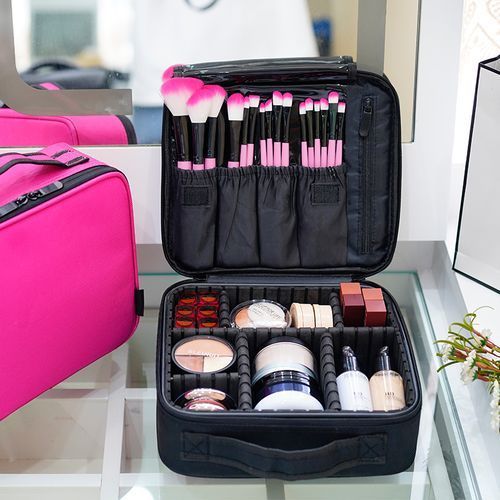 The mini 2 step Makeup Box comes in a Red colour that lets you tidy up your various makeup brand for you to easily beautify yourself before hitting the road. The makeup box is designed for you to take it along with you to various trips as it is built to be lightweight for you to handle and comes with close latch and lock key that secures all your cosmetics and jewellery for you to accessorize all your fashionable clothing. It comes in black colour with a smooth finishing body and silver panel details that make it eye-catching. It features 2 extended sliding trays that slide out easily for you to have access to your toiletries, necklaces, earrings and makeup as the interior is spacious to contain everything. The makeup box comes with a heavy-duty handle that offers your hand comfort when gripping the handle. Keep your expensive necklace sets and makeup brand well-arranged in the professional makeup box that takes in everything for you to secure it with the key lock till the next use. Get the best professional makeup box price on rehmie that is stylishly designed with lined flannel to be your beauty organizer.