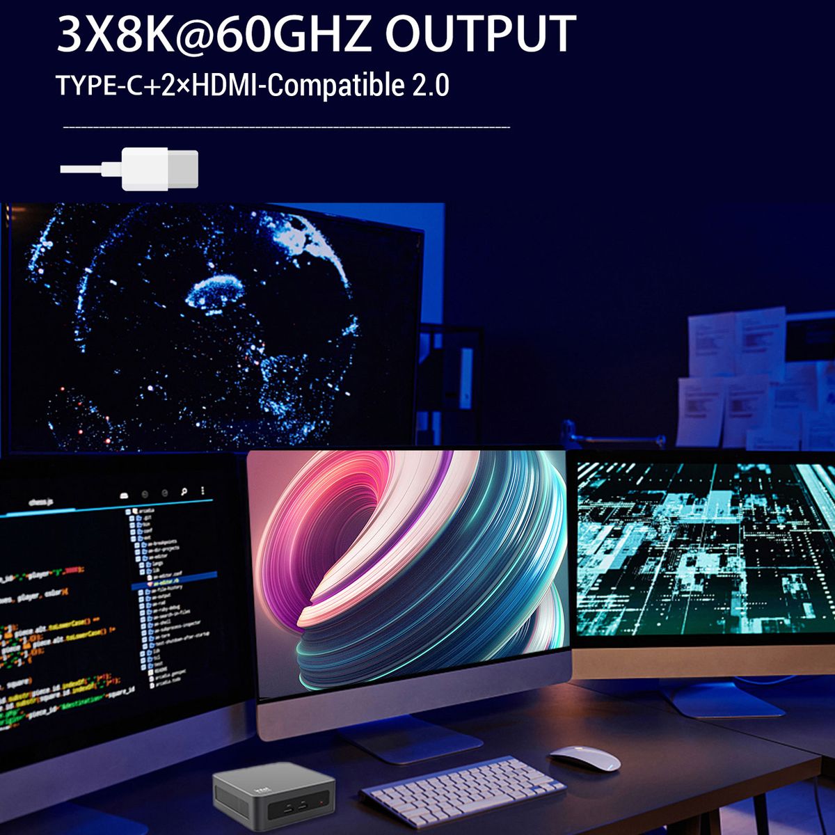 Multi-functional Interface: The product is equipped with a Type-C interface, 2 USB3.0, 3.5mm Audio, port, and 2 HDMI2.0 compatible interfaces, supporting 8K@60Hz output, which can meet the connection needs of various devices.