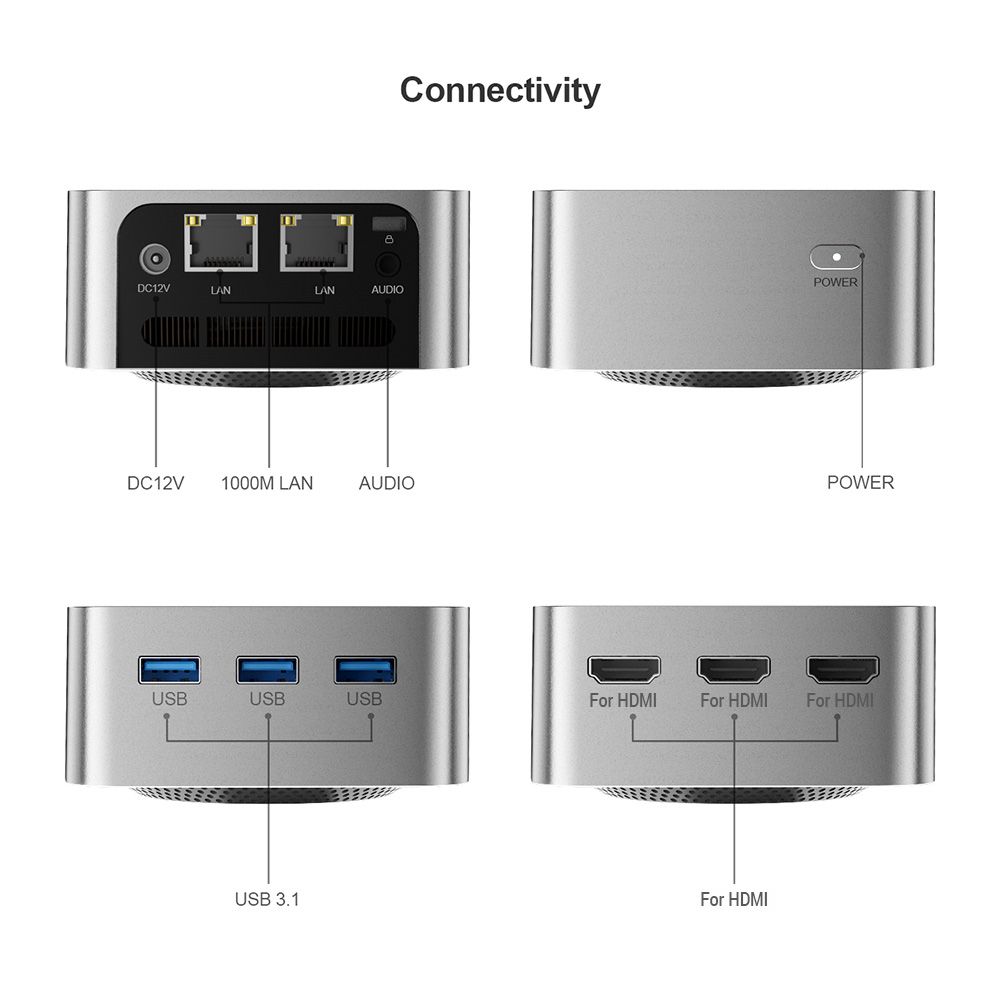 Ports: USB3.1*3 / HDMI-Compatible 2.0*3/RJ45*2/*1/3.5mm Audio*1