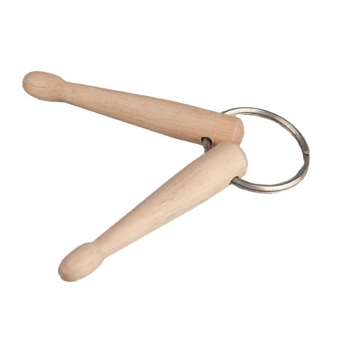 Mini percussion instrument 2 drumstick wooden drum sticks keychain.