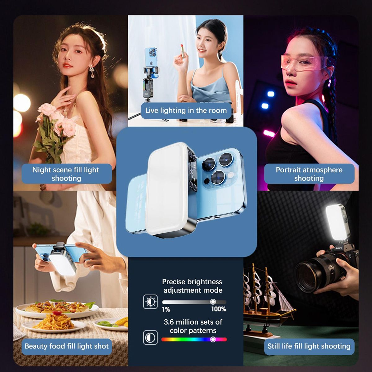 Buy Mini Photography Lamp Dimmable LED Light Portable Vlog Light with Tri-color Light Modes 2000mAh Battery USB Charging Port Foldable Phone Clip 53 LED Beads 2500K-9000K Color Temperature in Nigeria