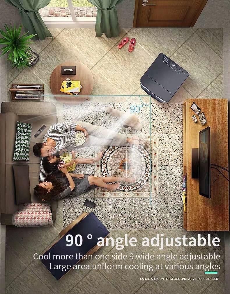 Product size: 170*160*145mm Water tank capacity: 550ml The extremely compact and lightweight air includes an economical and perfect cooling system, which is suitable for patients with allergies and respiratory disorders, because it can better balance natural moisture and prevent air drying. If you want to leave more ice, add water ice or the ice stone beside Agua, you can also filter it out, and then put it into the freezer. After freezing, insert it into the air, and the air will be colder. or essence can be added as long as it is diluted in water. It is very suitable for cooling personal rooms, offices, kitchens, reading rooms, and camping. Just put a small amount of water in your tank. Automatically, your system starts a process of evaporating water, contacting with hot air, and cooling time! In addition, your internal filter can retain impurities, providing you with the air purifier you need! The air is easy to carry and is ideal for use on desks, bedrooms and even kitchen countertops. It even includes three levels of ventilation, allowing you to choose the ideal intensity at every moment of the day.