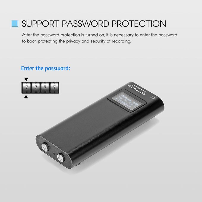 【Enhanced Capacity】: Support volume control, forward & rewind function, and time setting to record the exact time of recording, convenient and practical. It also support password protection, after the password protection is turned on, it is necessary to enter the password to boot, protecting the privacy and security of recording.