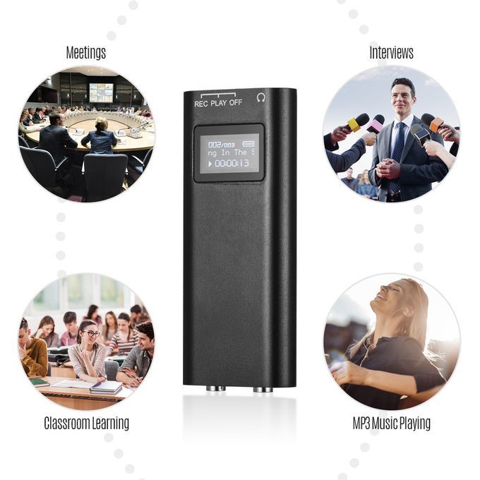 【Compact & Portable】: Small size, back with clip design, the weight is 17g only, easy to carry and hide. The recorder with 8GB memory capacity, you can use it as a portable recorder or a MP3 player, it can be widely used in classroom, meetings, interviews recording, MP3 music playing and so on.