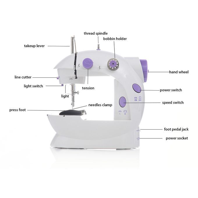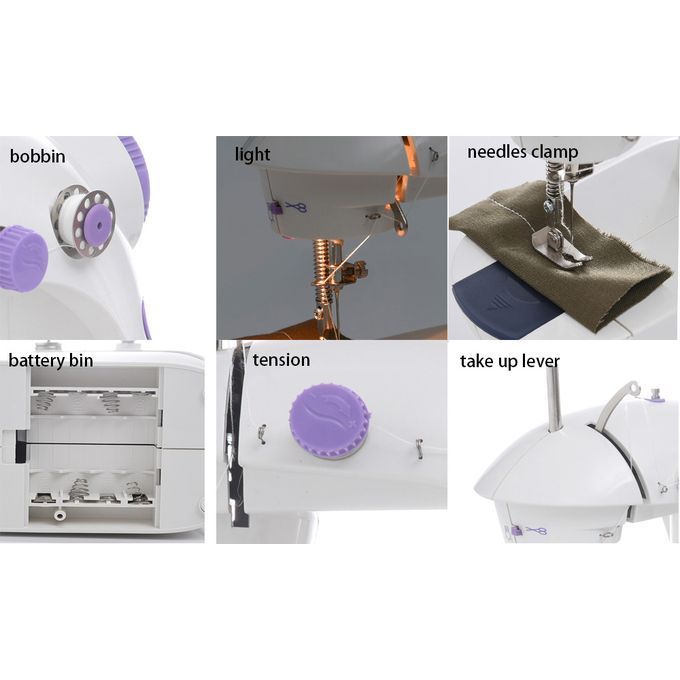 Overview:You and your family can get crafted with this Mini Sewing Machine.This is an appliance for small sewing projects. It is equipped with the double threads, double speed, and with a light design.Features:- Mini sewing machine offers double threads and perfect stitch control- Better sight and more convenient in thread cutting- Mini size, lightweight and with an exquisite workmanship- This sewing machine is a basic sewing machine, with its easy-to-use feature, suitable for all sewing machine users- Equipped with lighting lamp and thread cutter, easy to cut off threads- Large spool can be used with rewinding device for easy replacement of bottom bobbin- Extension table size: 9.84 inch x 7.87inch x 2.48inch