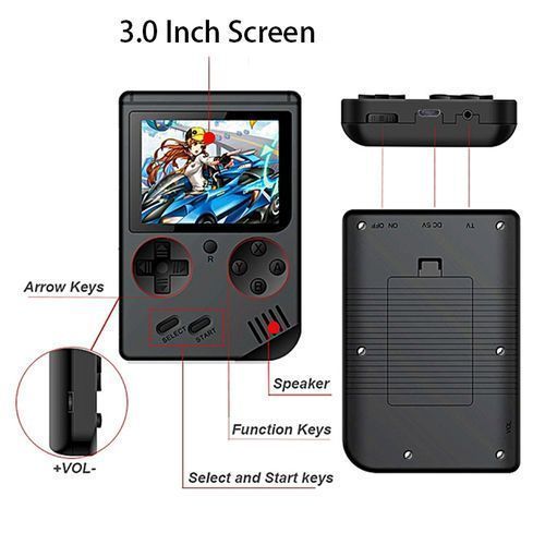 Screen 3.0-inch TFT color screenThe game features support 8-bit games with 400 built-in gamesOther features support TV connectivityPortable in size, easy to carry and play with.The built-in Typies don't have to duplicate classic games.Support China and English.Thank you very much. If you are not interested in this consoleYou can open other stores similar to game machines and have a lookI hope our products will bring you good luckWish you happy every dayHave a nice day!Light and portable.Can connect to TV, support AV outputA best gift for your child or a loved one.Material: ABSScreen 3.0-inch TFT colour screen