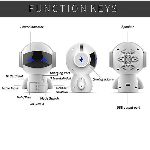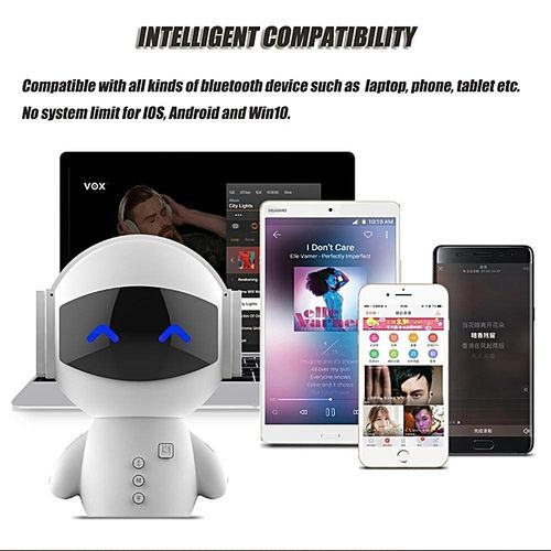 Mini Portable Robot Smart Blueototh Speaker With BT CSR 3.0 Plus Bass Music Calls Handsfree TF MP3 AUX With Charging Function - White