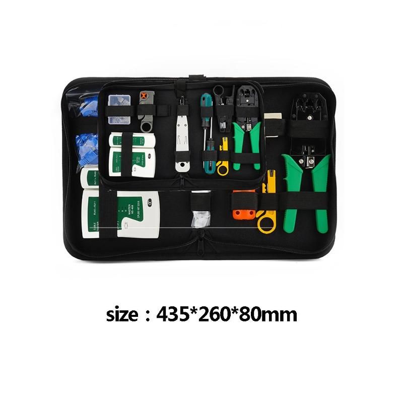 Suit features:1. There are three functions: stripping, cutting and pressing.2. The tool holder is made of all metal, with long service life;3. The handle is made of special material, skidproof, comfortable to use and extremely strong feel, which conforms to the ergonomic design;4. Save time and effort, improve the efficiency of pressing, so that individuals can easily complete the pressing line.5. The quality of the is good, which can ensure that the cut end is smooth and free of burrs. The distance between the two metal s is moderate, which can easily peel off the rubber skin of twisted pair, but not easily cut off the wire.6. The shape size of the pressing line section is consistent with the crystal head, which is not easy to appear dislocation, and can better make the connection between twisted pair and crystal head firm.Specifications:The Ethernet Cable Crimping ToolModel: 7SQ-376ZScope of application: RJ11/RJ45 conventional and through hole connector (through hole crystal EZ crystal head), can strip UTP/STP circle pair stranded wire, flat telephone line.RJ11/RJ45 6P8P Stripping Type:UTP/STP circle pair cable,flat line.Cat.6 three-use network pliers, 8P+6P+4P three-use pliers.Crimping Tool 8p+6p+4,RJ45/12/11Applicable terminal type: telephone line, network wire crystal headCompression range: handset 4P2C/4P4C RJ22Telephone line 6P2C/6P4C/6P6C RJ11Network line 8PPC RJ45Stripping and cutting ability: flat telephone line, circular pair of stranded wires (network wires)Material: body :S45CHandle: ABS)Hardness: HRC 45±3°Length: 190mm/7.48"Features:With ratchet saving device, save effort and ensure the pressure effect.A variety of die can be selected, covering all common specifications of telephone, network terminal.The shear Part is equipped with protective device to avoid working injury.Ratchet has the function of locking, easy to receive.It has UTP/STP round twisted pair function.Specifications:Package size: 435*260*80mm/17.13*10.24*3.15"Package weight: 850gMaterial: PP+600D Oxford clothNotes:1. Due to the different monitor and light effect, the actual color of the item might be slightly different from the color showed on the pictures. Thank you!2. Please allow slight measuring deviation due to manual measurement.1 X 12pcs Network Repair Tool Set