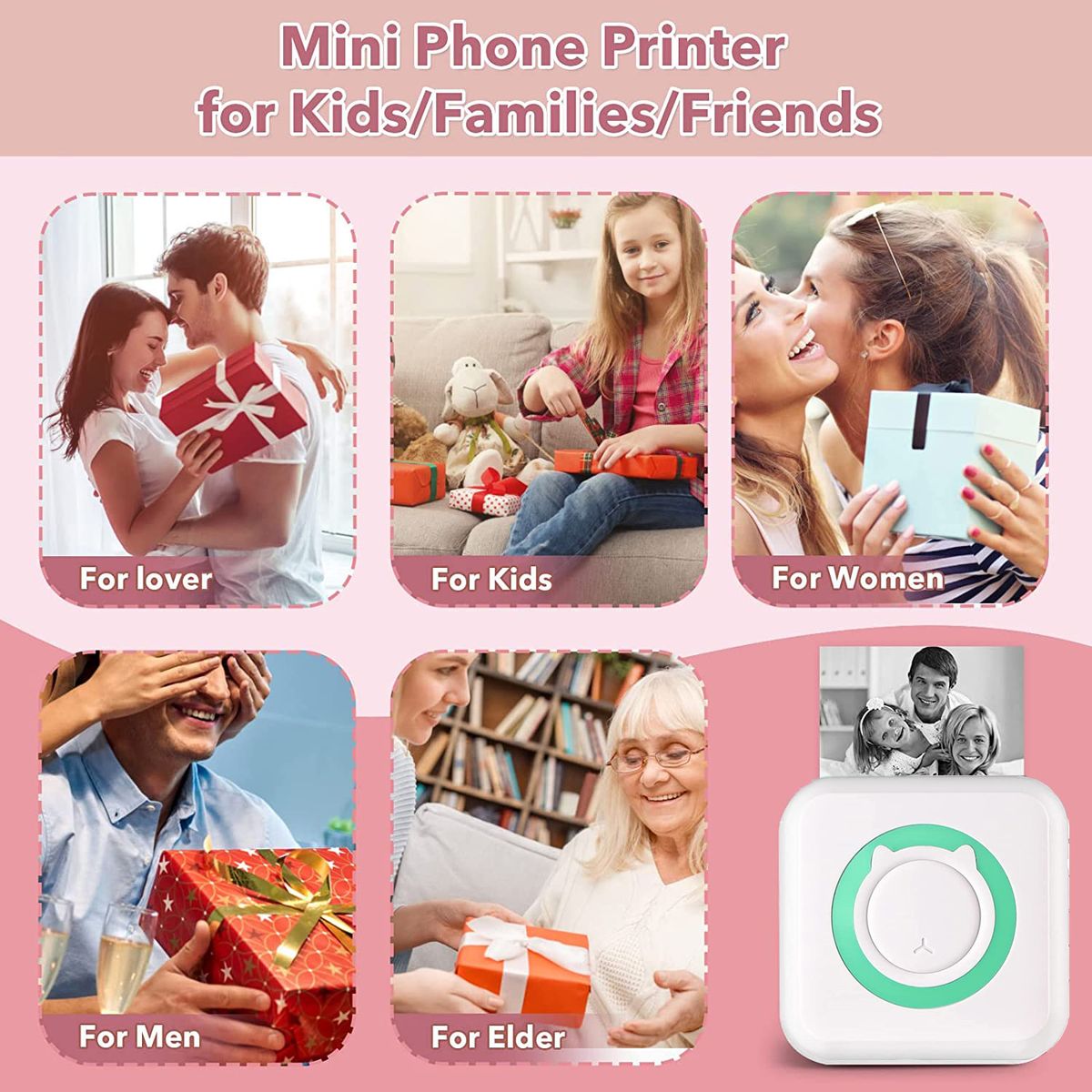 【Great gifts】 The mini printer has a nice appearance. You can use this printer as gifts for your children to help them with their studies, as well as for office workers, lovers, friends, family.