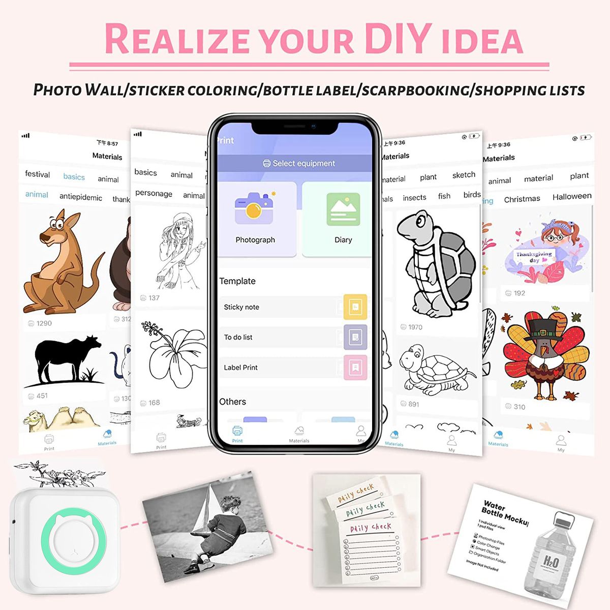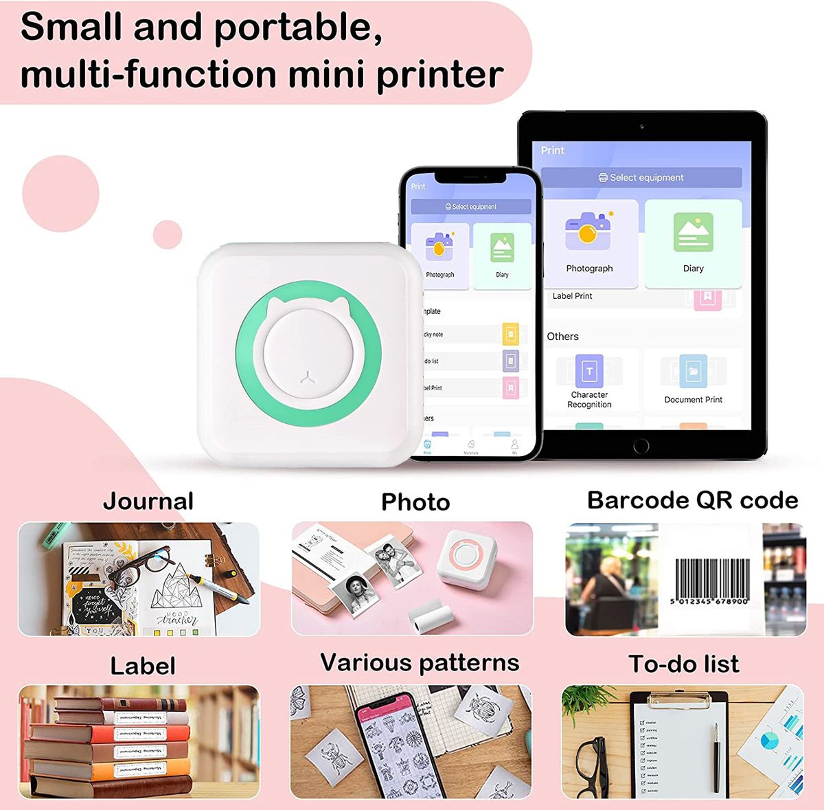 【Multifunctional connection mode】 The mini printer connects to any smartphone, tablet or similar device based on iOS or Android [via Bluetooth]. You can print photos to capture the good moments in your life, as well as print stickers, business cards, documents, lists, notes, messages, QR codes, etc. to increase the efficiency of your studies or work.
