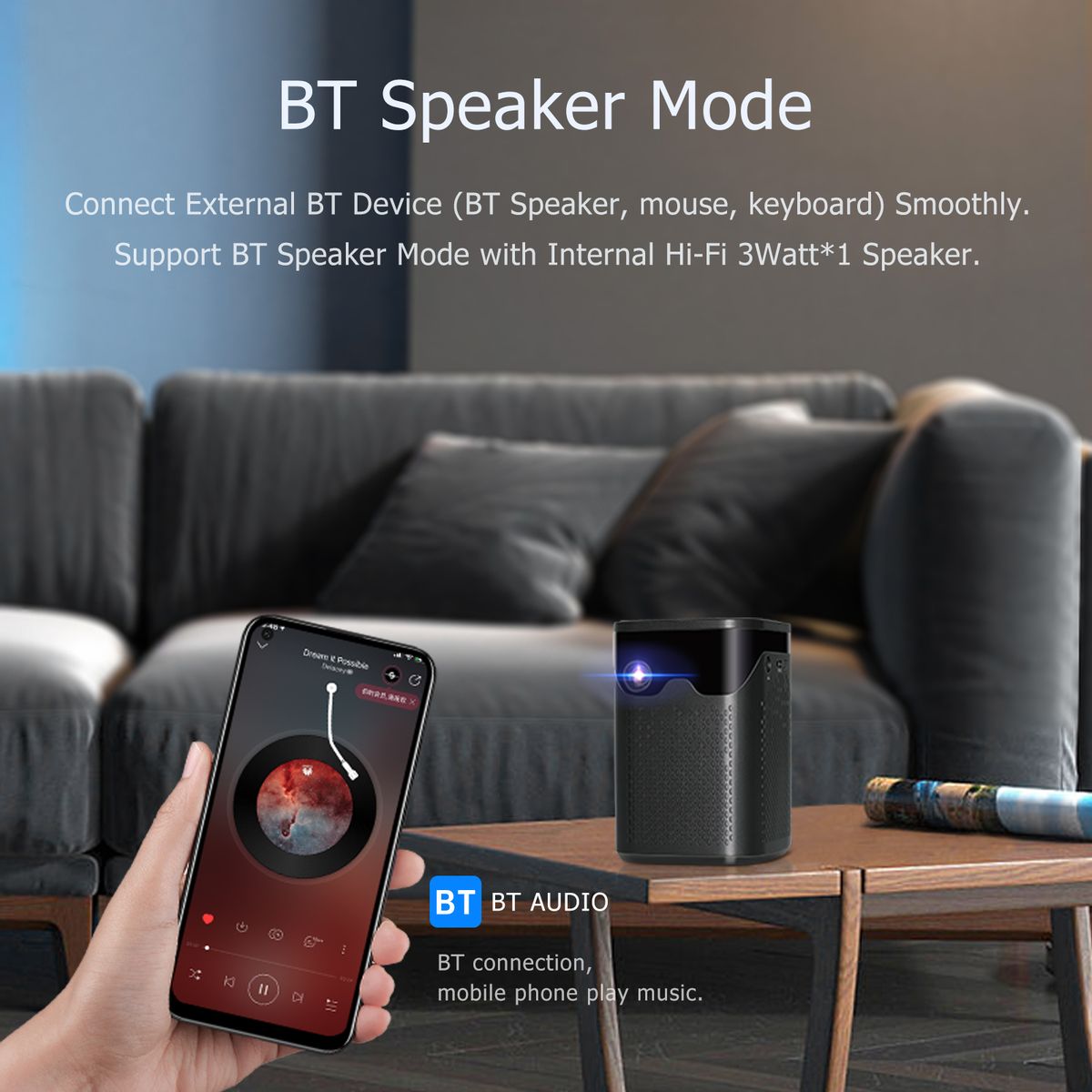 110x74x74mm compact size and only 410g, way more portable and less burden to carry it outdoor just put it in your bag or suitcase. Have a great movie experience with your friends, parents, colleagues. Comes with a remote controller, with simple UI interface makes it easier to operate.