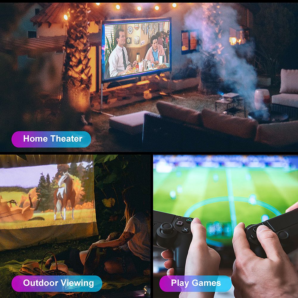 120" Image Projection: Experience the ultimate home theater and party experience with your loved ones with our projector that can project images up to 120 inches. Whether you're watching a movie or hosting a gathering, the big screen experience will leave you and your guests in awe. Enjoy the convenience of having a cinema-like experience in the comfort of your own home or anywhere you go.