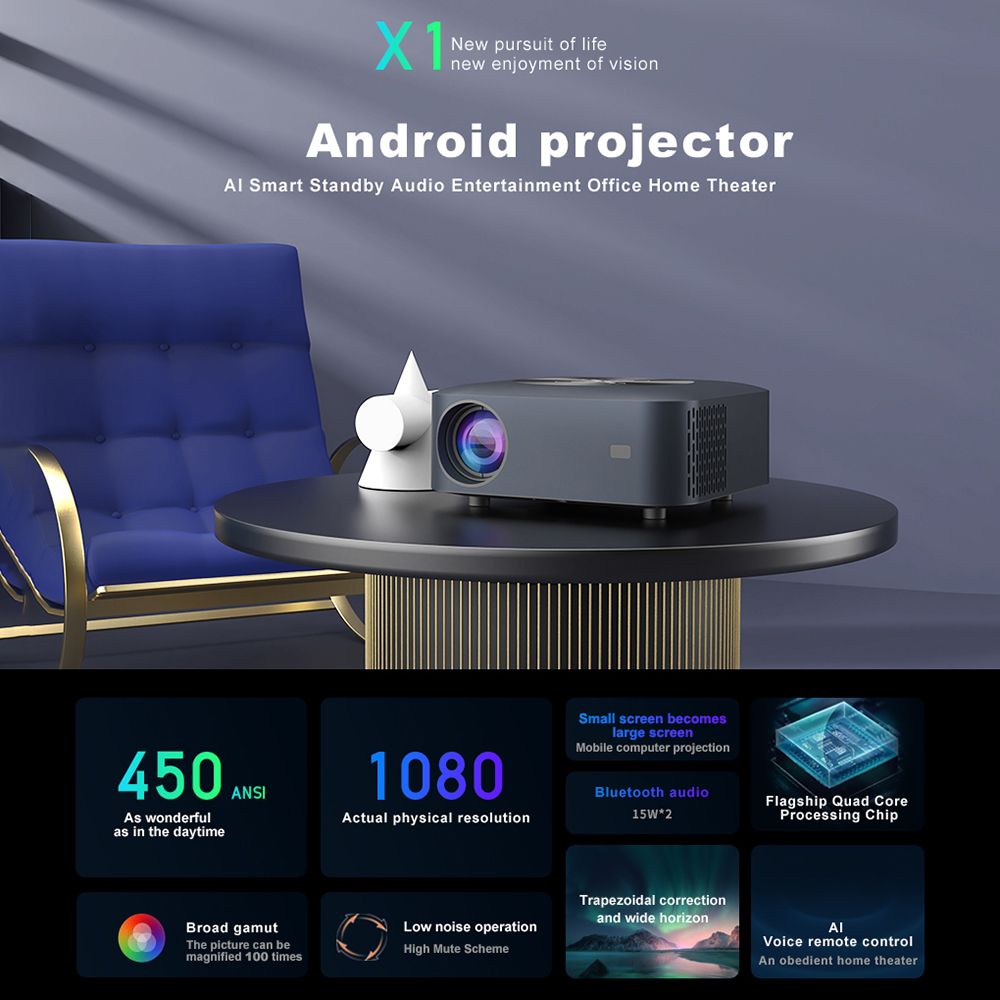 Wonderful Speakers & Quiet Cooling System: Equipped with a built-in Box Speaker, it delivers high-quality sound that perfectly complements your movie or music experience. With its tri-frequency dynamic regulation, you can easily adjust the sound to your liking. Moreover, you won't have to worry about excessive noise or overheating as this portable projector is designed to operate quietly and efficiently. With the X1 movie projector, you can enjoy a seamless and enjoyable viewing experience.