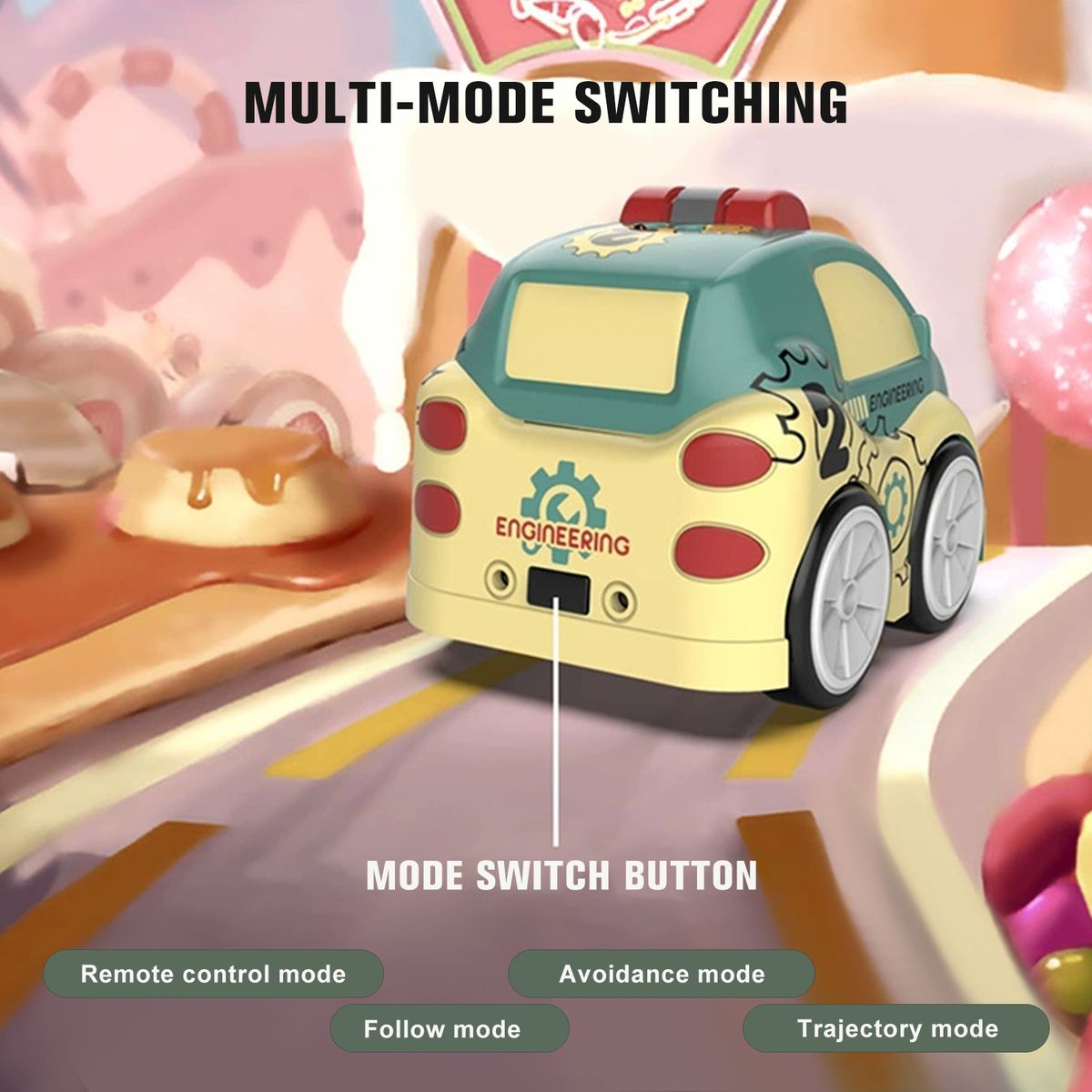Compared with other common remote control cars, this intelligent RC car is equipped with three uncommon modes: follow mode, avoidance mode, and trajectory mode. In avoidance mode, when your hand approaches the top or front of the car within a certain distance, the car will run away quickly. Since it\'s hard to catch the car in this mode, the kids will be attracted by this function.