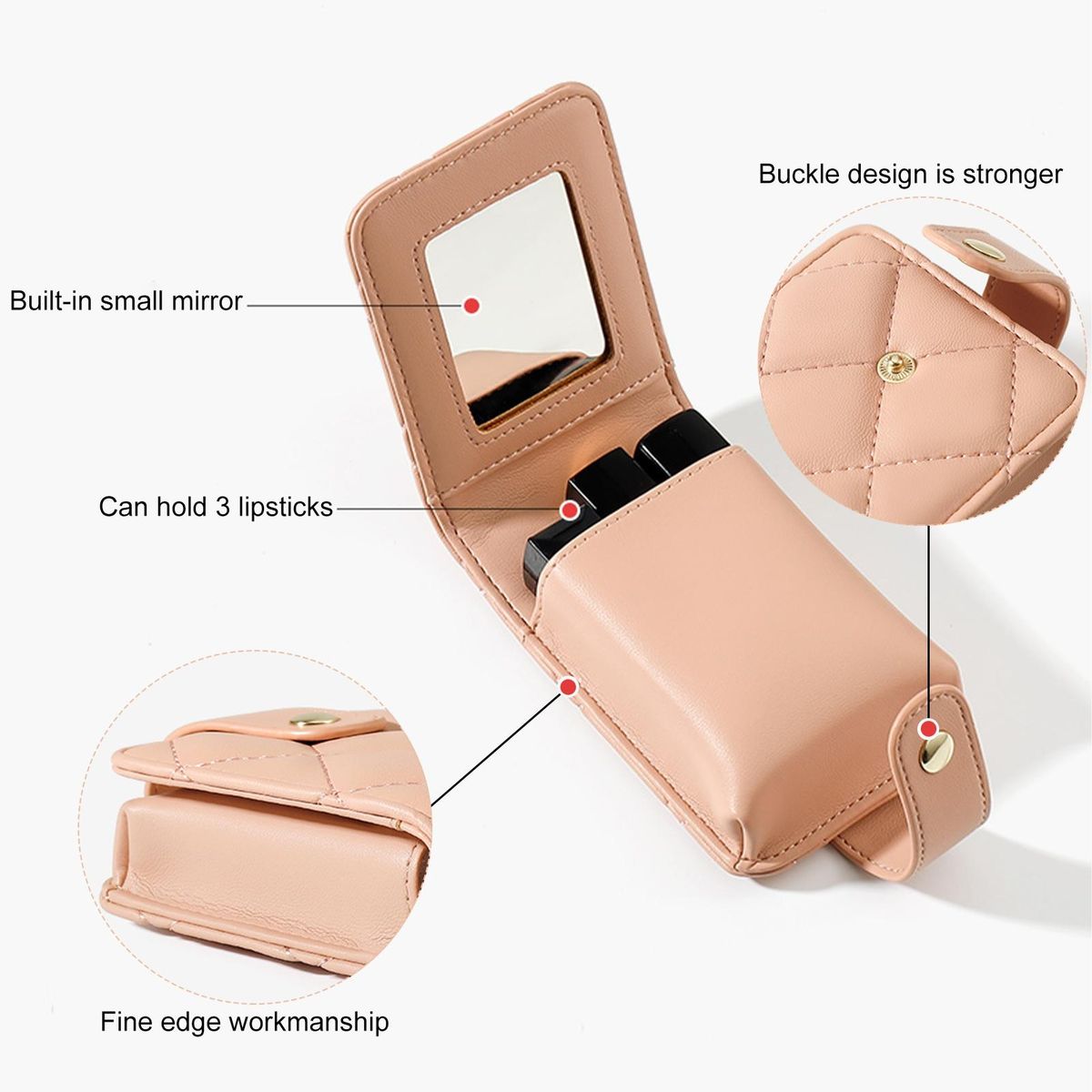 What truly sets this lipstick bag apart is its built-in pocket mirror. with this mirror conveniently located inside the bag, you can effortlessly apply makeup anytime and anywhere. say goodbye to the struggle of finding a mirror or worrying about damaging it this bag has got you covered.