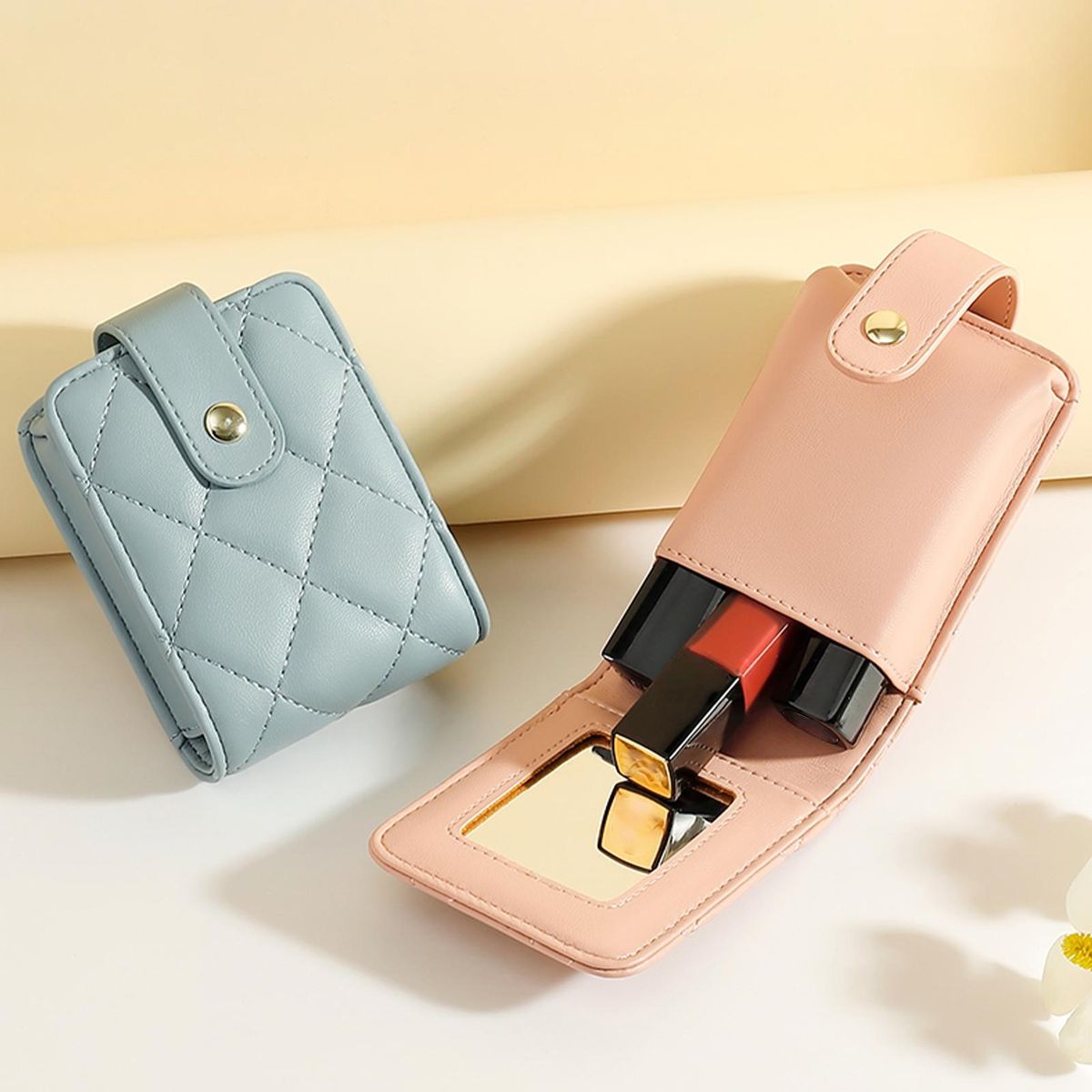 Our lipstick bag with a small mirror, the ultimate accessory for all your makeup needs. this versatile bag is designed to hold up to 3 lipsticks, making it perfect for quick touch-ups on the go. but that's not all it also offers ample space to store cash, credit cards, and even some jewelry, making it a convenient and stylish cosmetic organizer.
