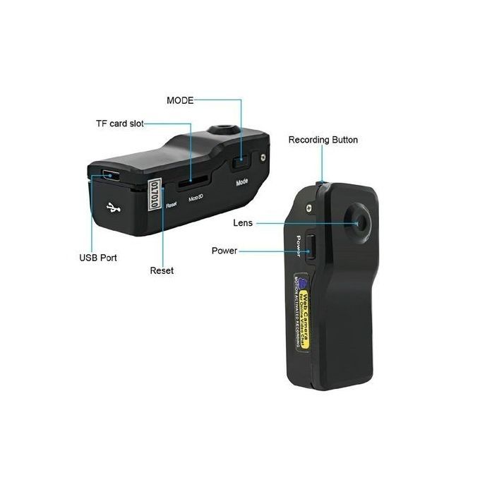 Very small and Lightweigh: PC Shell, LWH:2.3x0.9x0.6 inch; Net:25g; Compact design, Portable handheld DV DC, Anti-Shake; support TF card up to 32GB. Support for cyclic recording