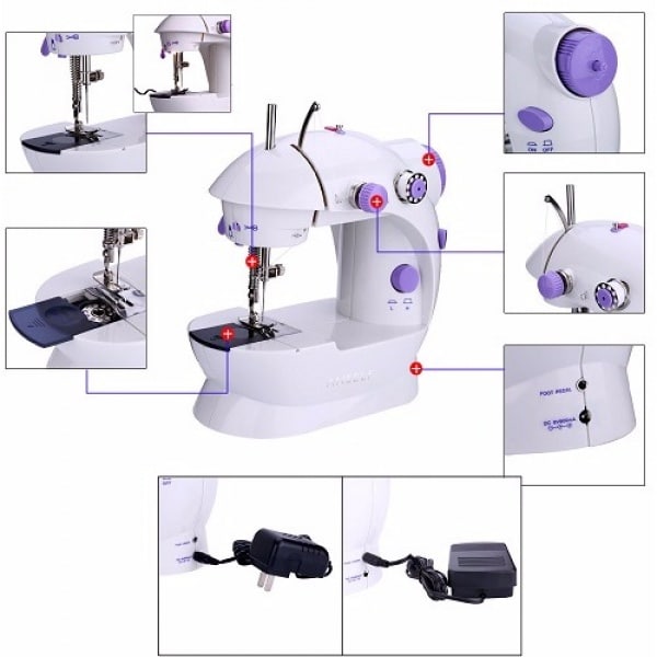 This mini sewing machine is compact,portable and ideal for all your sewing needs. It comes pre-threaded and ready to use. It features power alloy gears to guarantee long time use and comes with a pedal for easy foot control. It is powered by 4 AA Batteries or AC adaptor (Not Included).