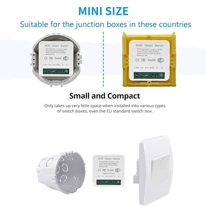 Compact design: this smart wifi module with mini design is applicable to the wall switch box and can be easily in the wall switch box of the switch without affecting your decorative style, thus making it smart. More importantly, your switch and this intelligent module can work independently in the interference free mode. Colour:As Shown