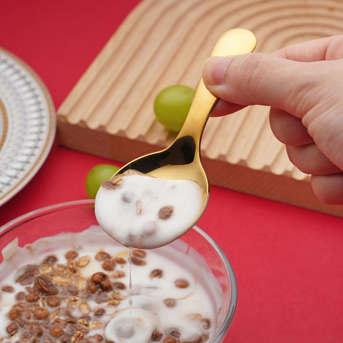 The spoon features a short handle design, adding a playful and cute touch, making it suitable for babies as well. it comes in a variety of vibrant colors, allowing you to add a pop of color to your dining table. .