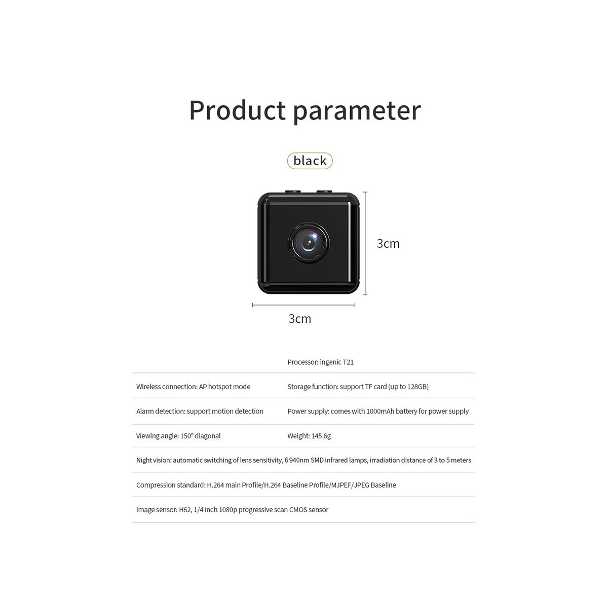 Professional has never been more convenient, simple to use, and discrete, combining all necessary functions in just a single piece of a small Wireless Mini Spy Camera that provides high-quality, HD 1080P monitoring of both indoor and outdoor spaces, making it a great choice for home security, body safety, baby and pet