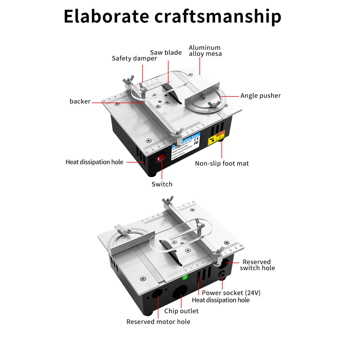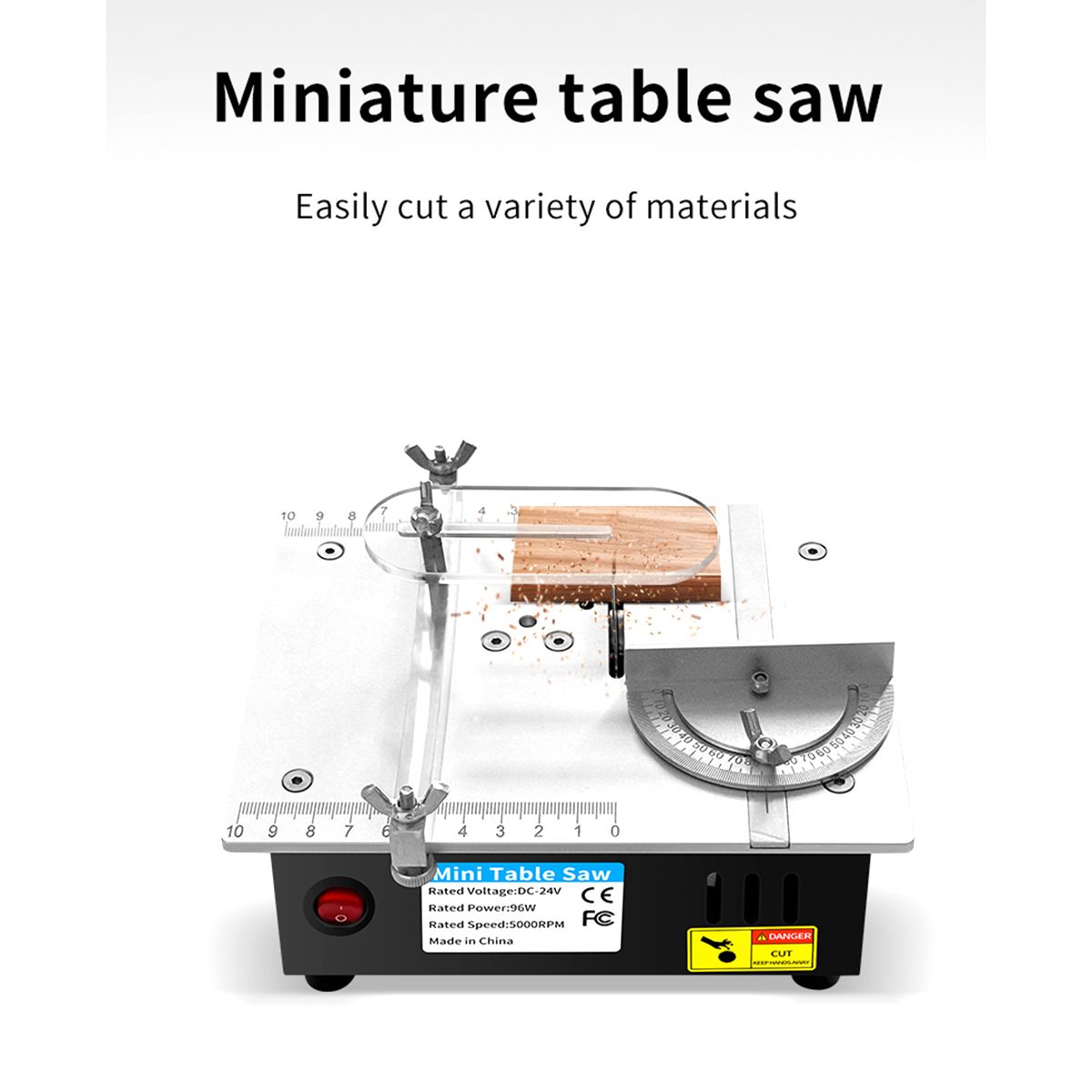 This is a kind of multifunction mini table saw, comes with high speed steel sawblade, and which is 14mm projected out from the tabletop. 96W high power, 7-gear speed control powersupply can meet the cutting requirements of different materials. Suitable for cutting PCB, small wood-sticks, PMMA, ring-pull can, thin wood board, aluminum alloy and etc.. Perfect for DIY handicraft, model building, woodworking decoration, and etc.. You can have a try.