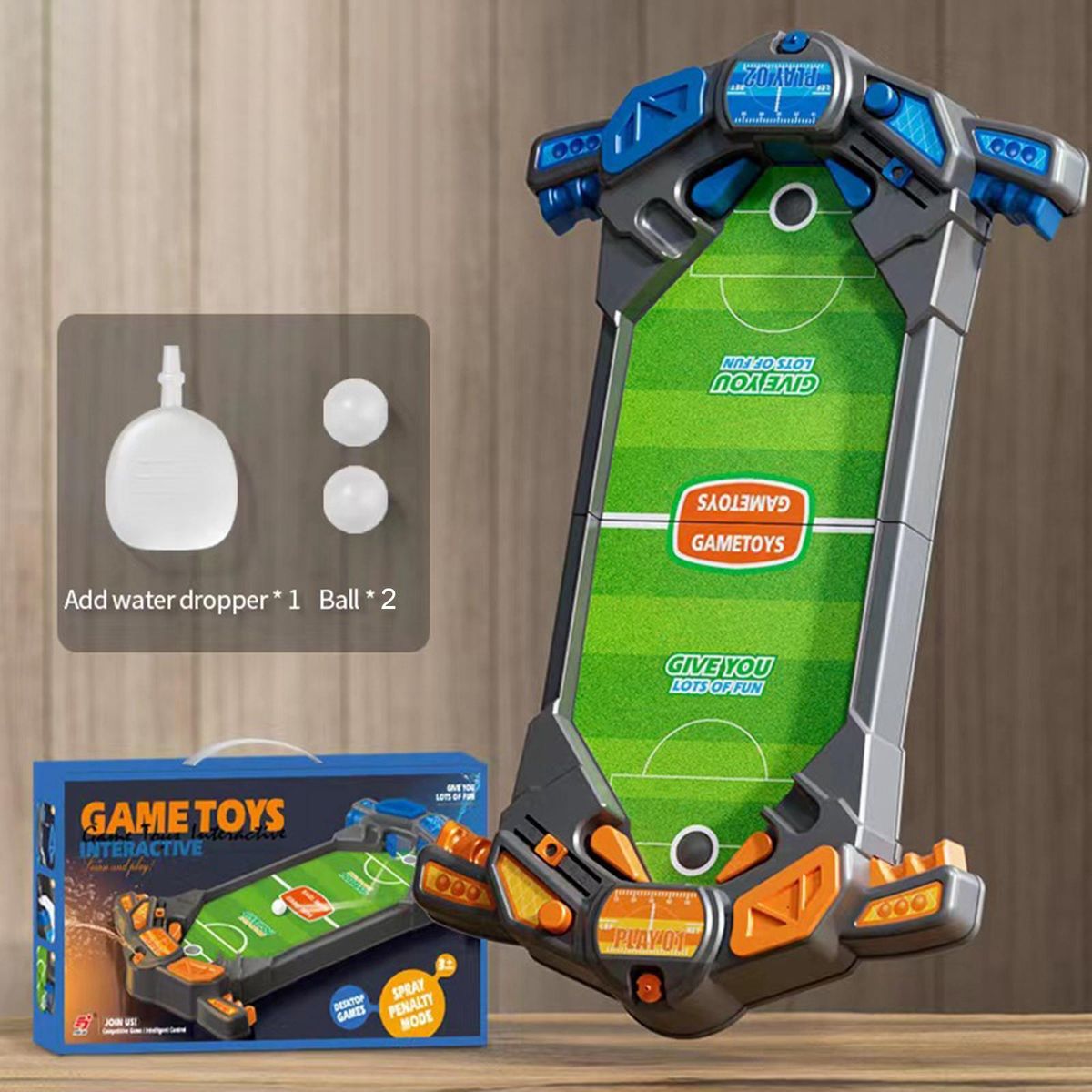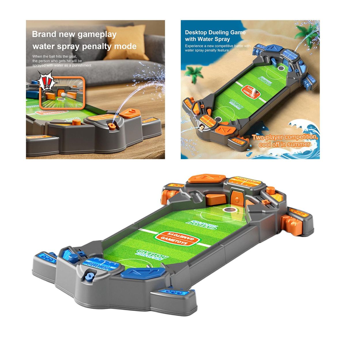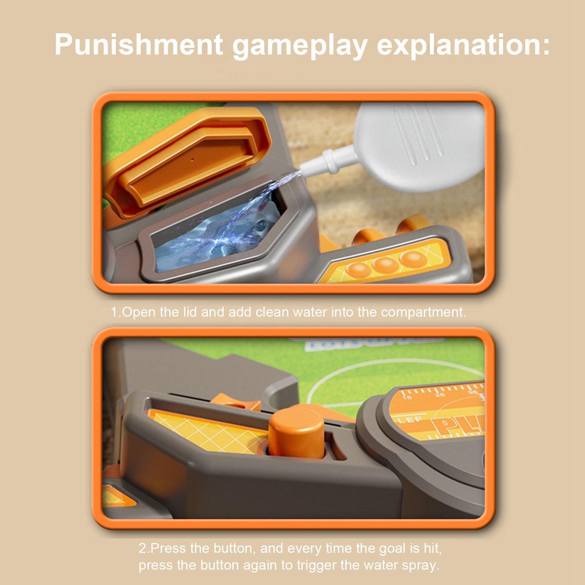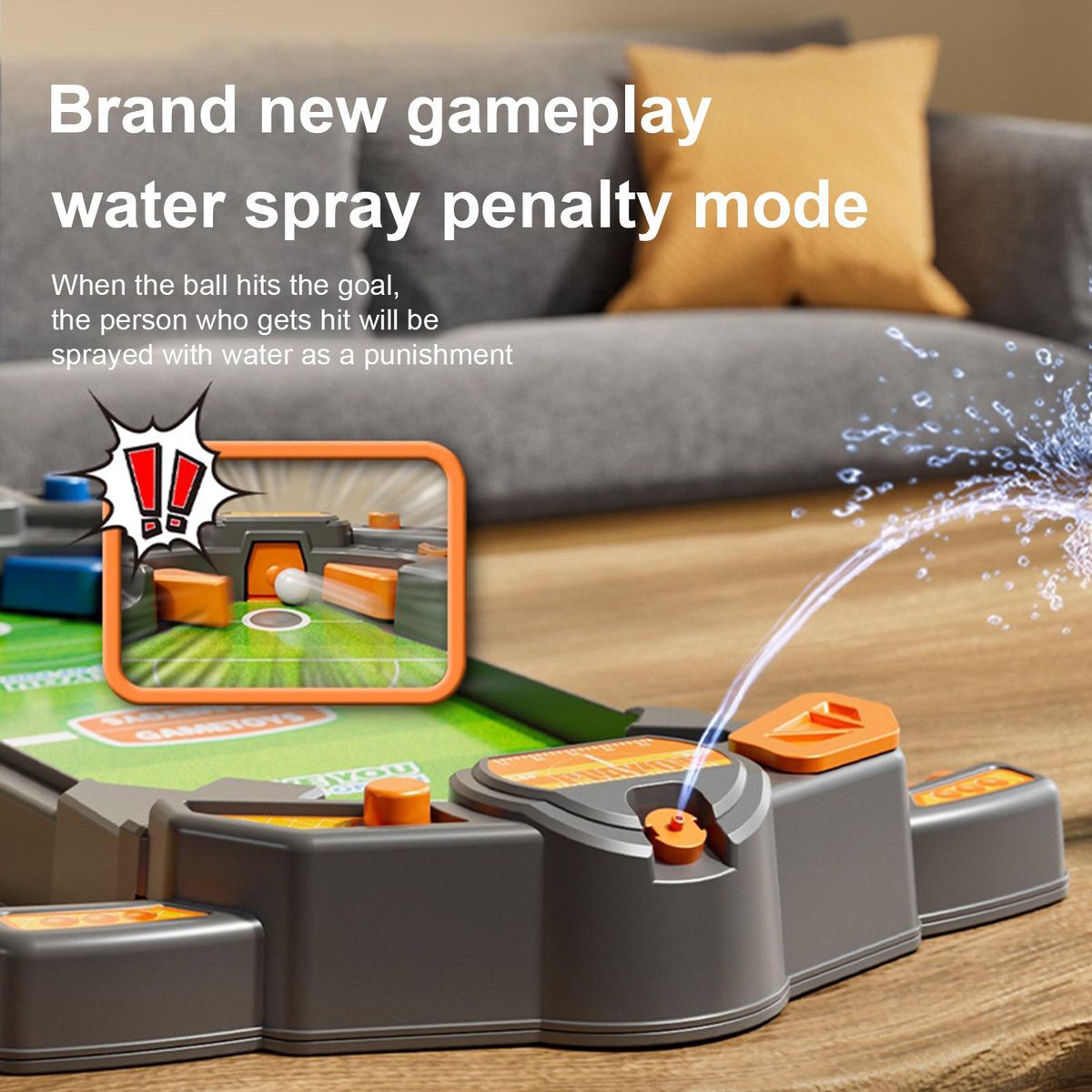 【with Spray Water】:Soccer table spray water.When the ball s the goal,the person who gets be sprayed with water as a punishment .