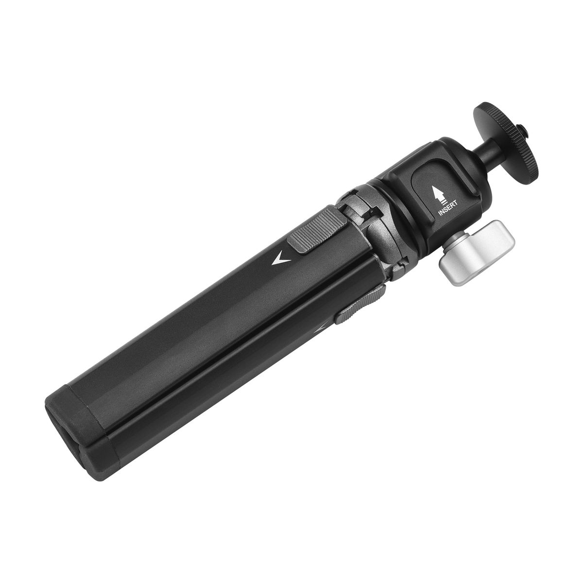 Multifunctional tripod, can be used as a sturdy support on the desk, ground, or other flat place; also can be used as a handle grip.