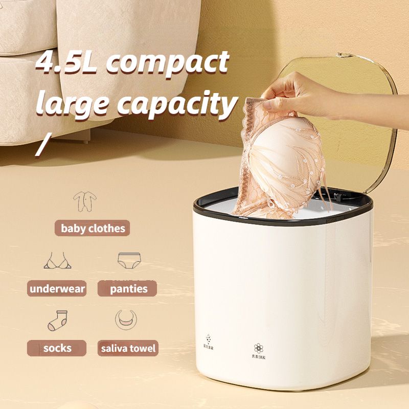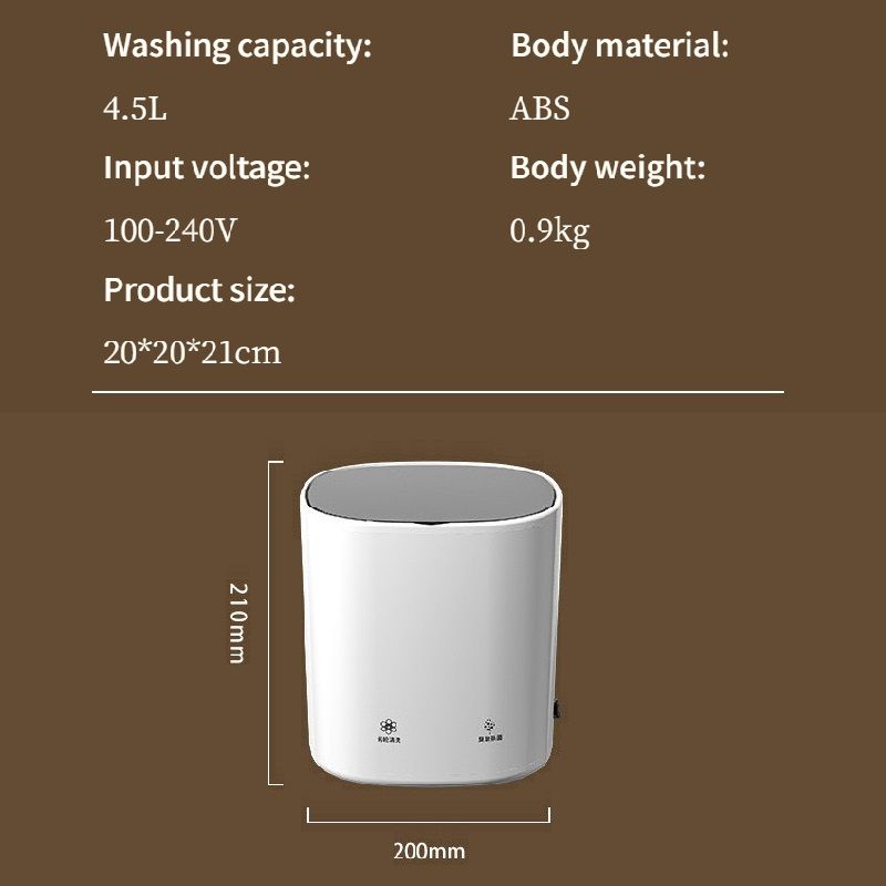 - This is a small washing machine specially designed for washing underwear, panties, socks and baby clothes. Small and portable, small and precise, it replaces the trouble of washing intimate clothes by hand and frees your hands. It uses a USB universal plug, which can be easily used no matter where you are, without geographical restrictions, truly global use, and only weighs only 1.5kg, you can carry it with you, it is a small mobile washing machine.