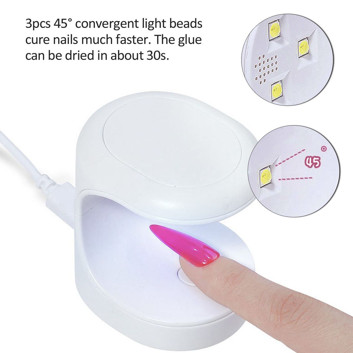 3pcs 45° convergent light beads cure nails much faster. The glue can be dried in about 30s.