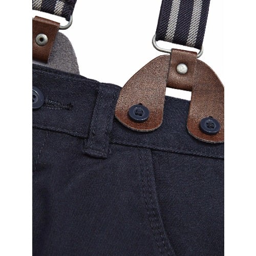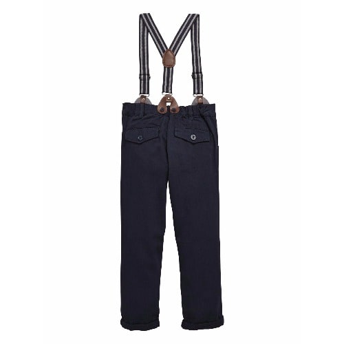 Your little hipster will be right on-trend in this cool pair of boys chinos and braces from Mini V by Very. The navy chinos are classic in style with a straight leg and turn-ups to taper the fit. With buttoned back pockets and belt loops, the striped braces keep the traditional trousers securely in place, while adding dapper character to his outfit.