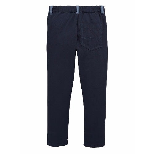 He can keep things classic in this smart pair of little boys chino trousers from Mini V by Very. The timeless trews are traditional in a navy colourway with a simple straight leg and a single patch pocket to the reverse. A stretchy back waist ensures all-day comfort, while belt loops allow him to add an accessory to personalise the fit further, and lend a cool contrast in chambray fabric.Styling IdeasHe can team these chinos with knitted jumpers and chukka boots for an on-trend AW16 look.