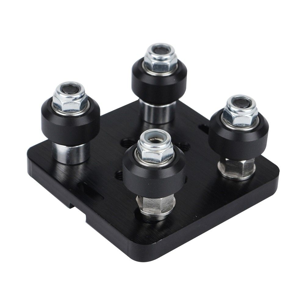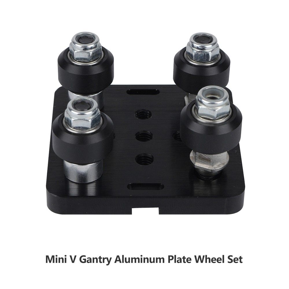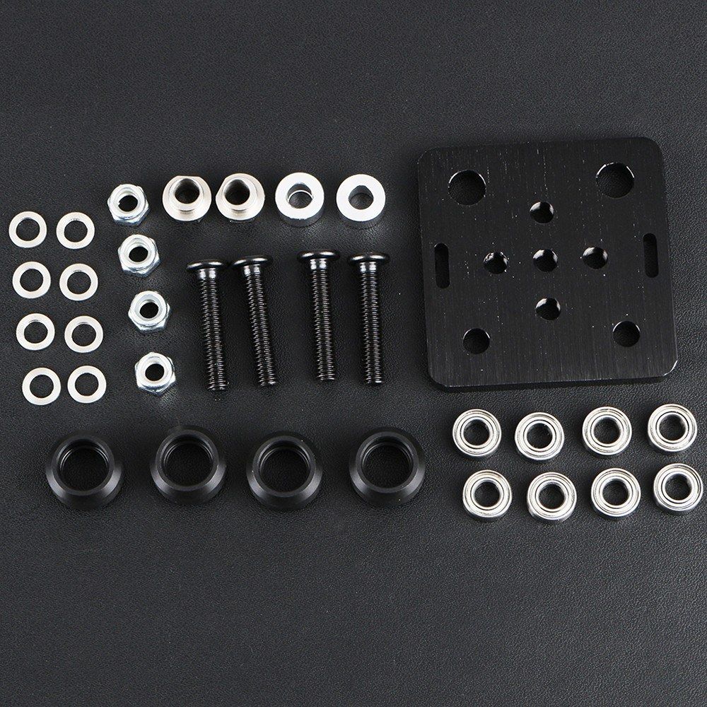 Package comes with 1*aluminum plate, 4*delrin mini V wheel, 2*aluminum spacers 6mm, 2*eccentric spacers 6mm, 4*low profile screws 25mm, 4*low profile screws 10mm, 4*M5 nut, 4*shim, easy to install.