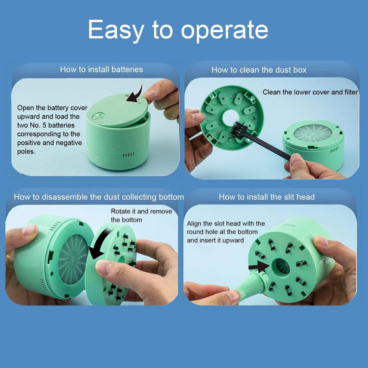 The desktop vacuum cleaner, the ultimate solution for keeping your workspace clean and tidy. with its innovative cleaning head, this vacuum cleaner effortlessly reaches small gaps like keyboards and sofas, ensuring no dust or debris is left behind. say goodbye to eraser shavings, pencil shavings, and other residues on your desk as this powerful cleaner sweeps them all away.