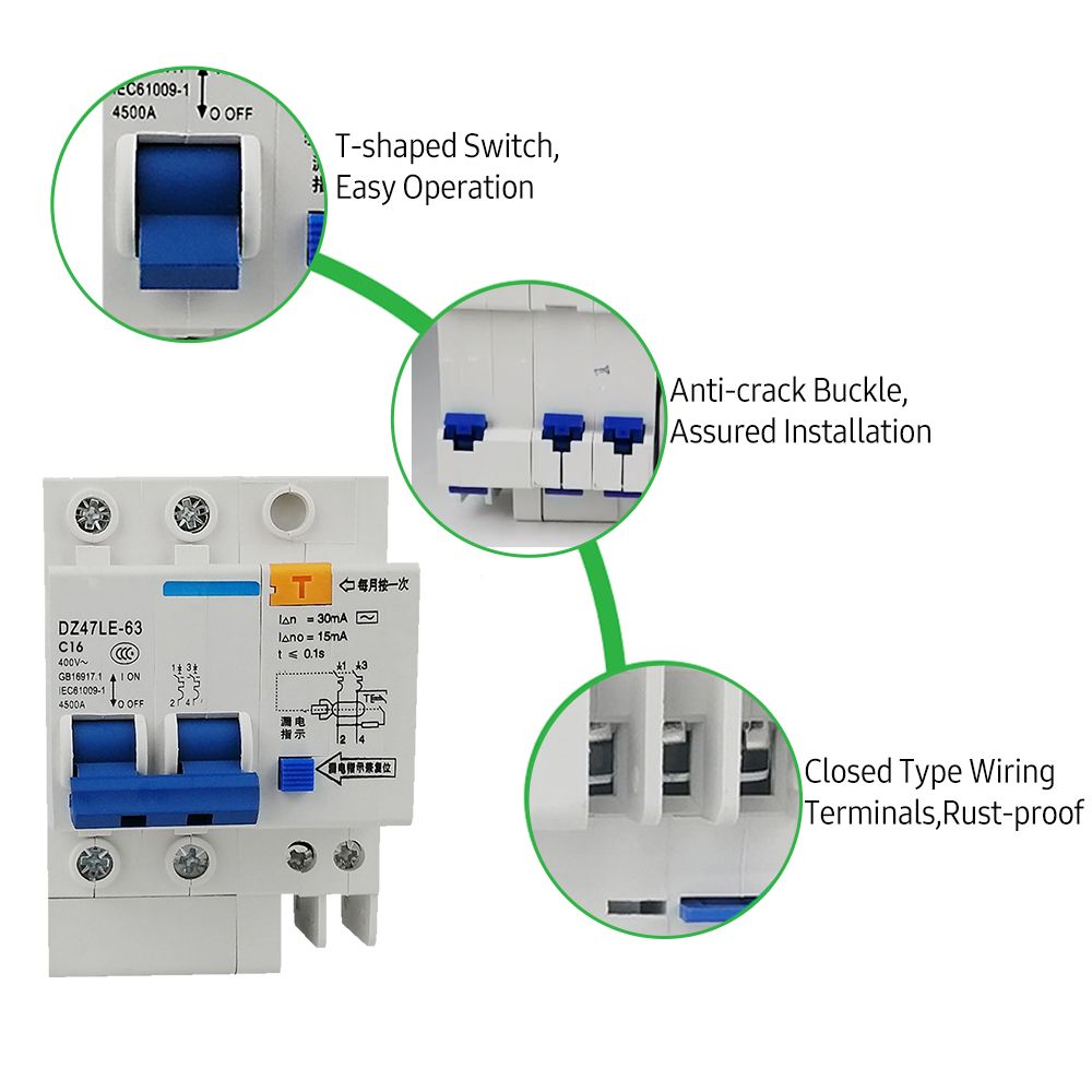 Features:Residual current circuit breaker with short circuit, overload and leakage protection. With high sensitivity to provide timely protection.