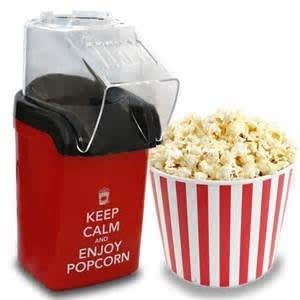 Home Popcorn Maker Fresh popcorn prepared in minutes Pops with air instead of oil reduces fat and fewer calories Convenient on and off switch Easy to use and clean Unit makes up to 12 cups of popcorn approx.