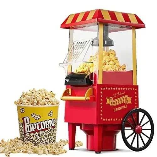 Pops up to 12-cups of popcorn per batchPerfect for use with all Nostalgia Popcorn Kits! (Theater Hot Air Kit-KPK400, PCJ30-Soft shelled Popping Kernels, PPB600-Reusable Popcorn Bowls)Healthy, oil-free poppingIncludes measuring cap to ensure proper amount of kernels usedUnique popping chamber design creates swirling airflow that results in fewer unpopped kernelsConvenient countertop sizePopcorn Maker