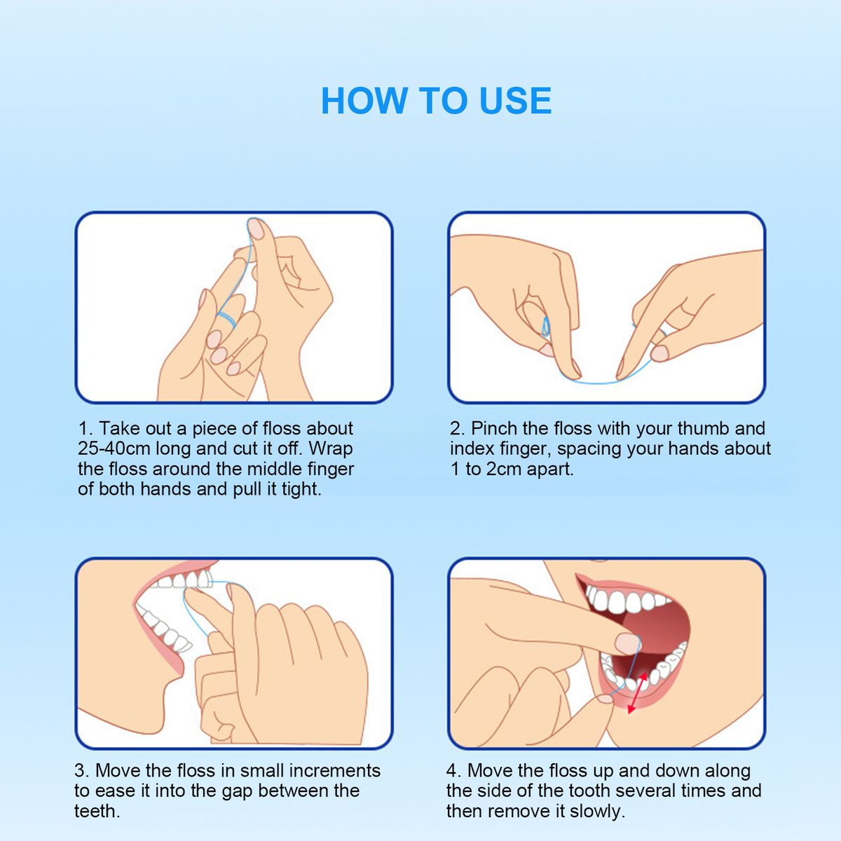 Made of food-grade polyethylene fiber, strong rally, and smooth round wire, it will not hurt the teeth.