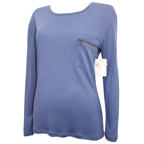 Mira LIGHT-DENIM Long Sleeve Zip Pocket Top