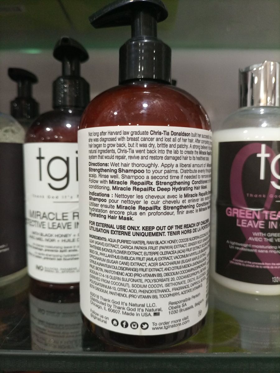 Our Miracle RepaiRx is the perfect combination of products and ingredients to assist the hair in restoring to its optimal state. This line aids in repairing dry, color damaged as well as heat damaged hair and works perfectly with protective styling.No parabens, sulfates, petrolatum, lanolin, artificial colors, or animal testing.
