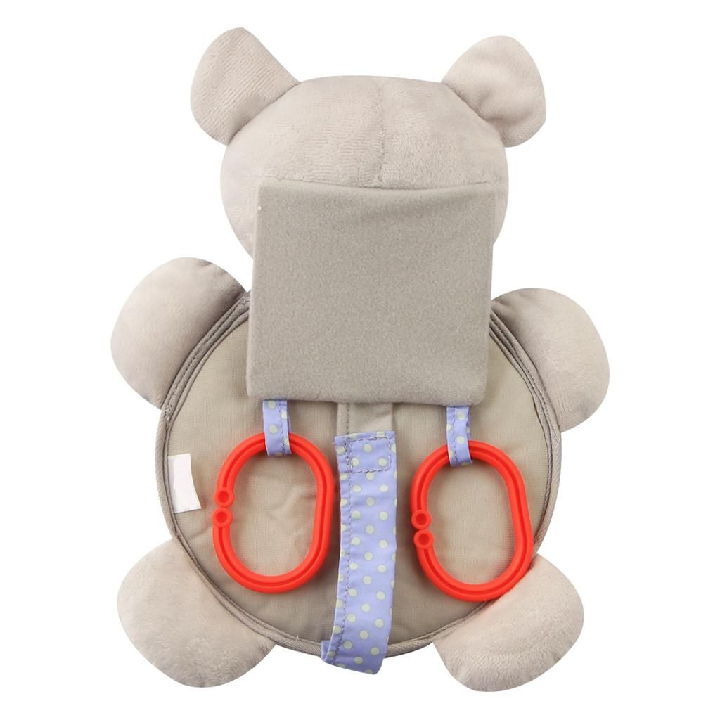 Shatter-proof back seat mirror, surrounding plush animal.