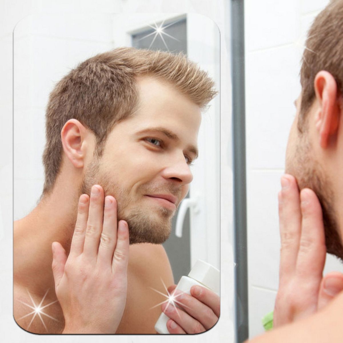 Rectangle Shape Mirror: Size in 27*17cm. Comes with double-sided tape, easy to fix on the wall.