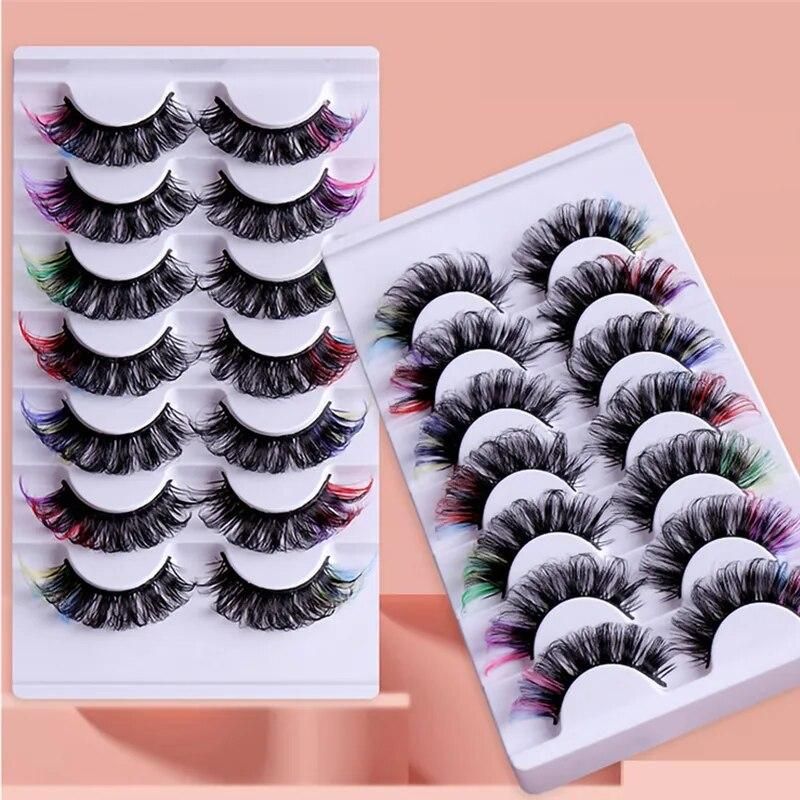 Buy Mix 7 Pairs Color Mink False Eyelashes 8D Faux Natural long Fluffy for eyelash extension Drama Soft Colored fake Lashes make up in Nigeria