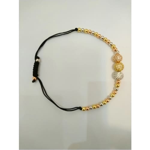 Three tone zircon beads on three tone bead bracelet with adjustable strap