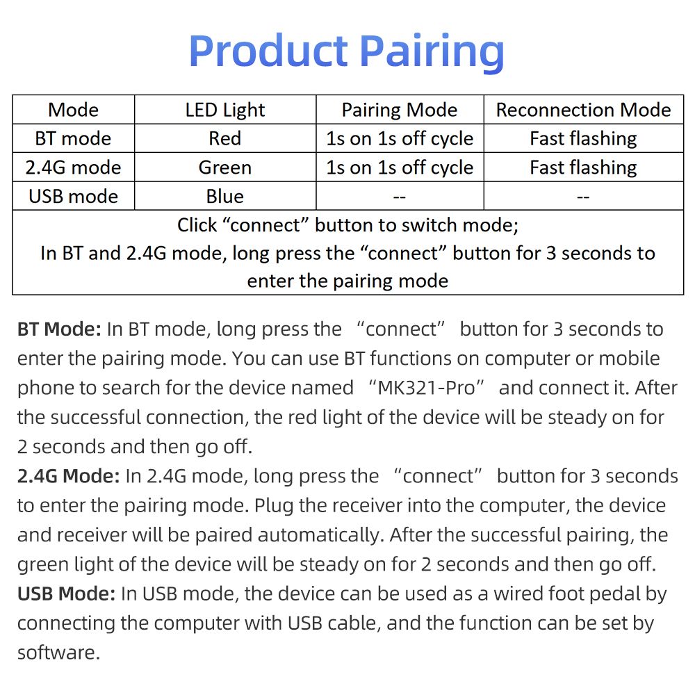 Connection mode: USB+2.4G+BT4.0