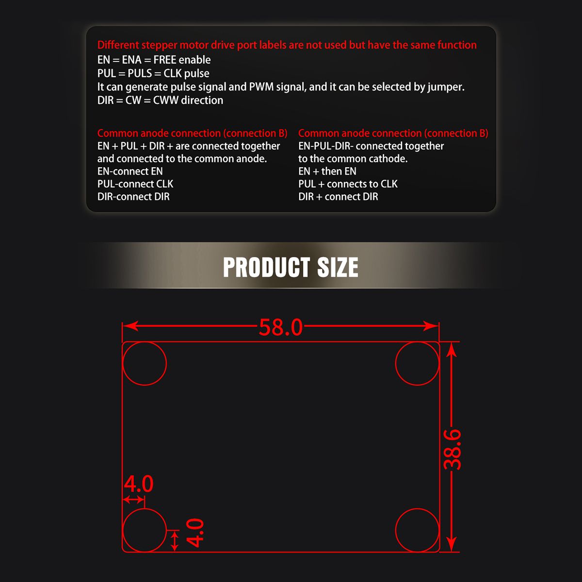Frequency measurement: You can measure PUL and common cathode (or common anode) two ports.