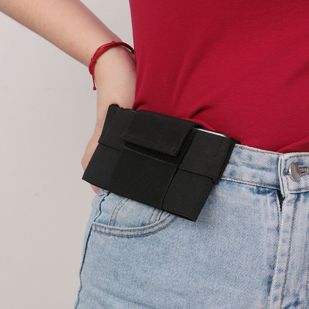 Strong adhesive fastener tape closure keeps your phone safe and handy.