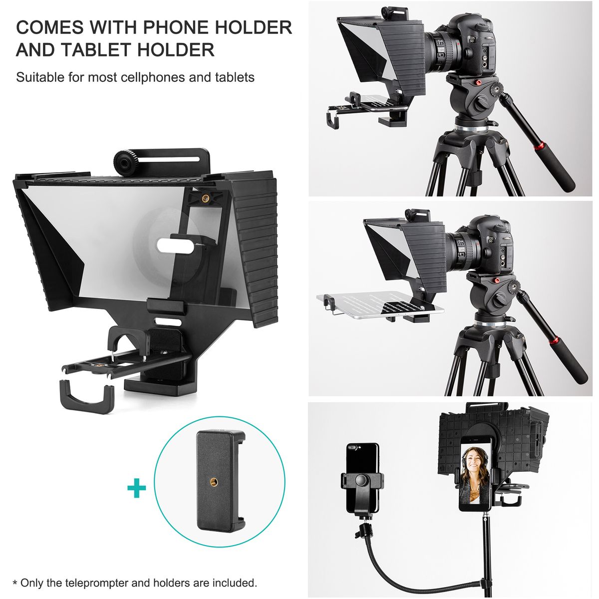 Teleprompter specially designed for most smartphones, tablets and cameras, perfect for live streaming, hosting, video recording, online teaching etc.