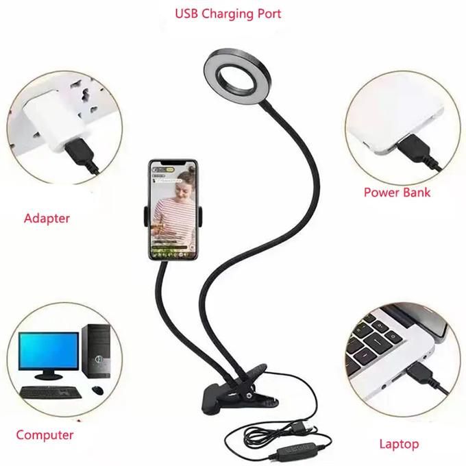 Product short description:Mobile phone holder for live broadcast, dimmable color-adjustable selfie ring light with mobile phone clip