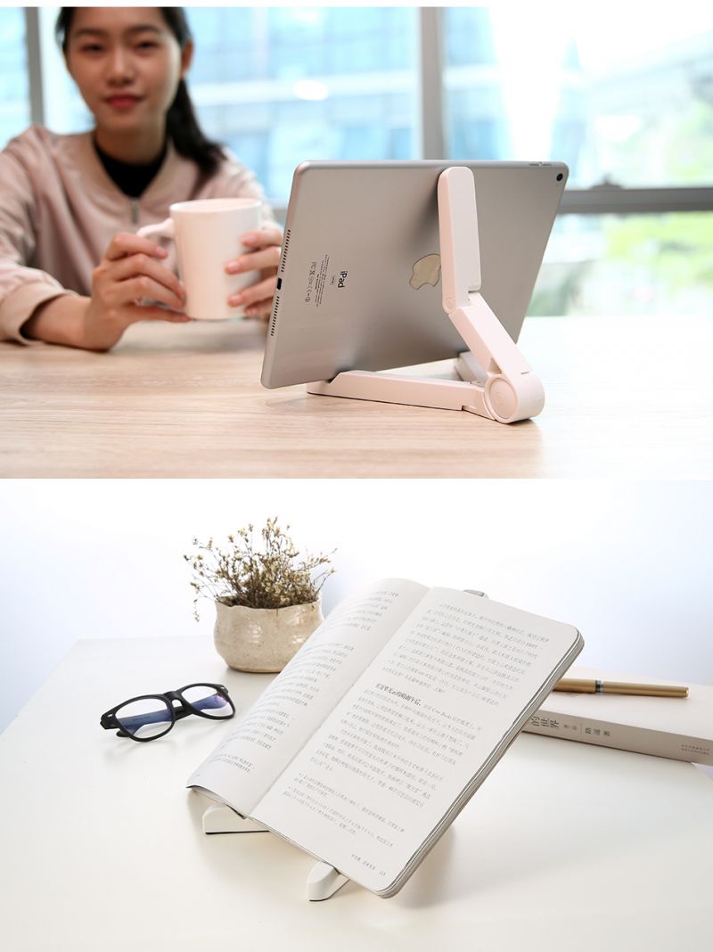 - Tablet Phone Holder Foldable. Tablets and smartphones are usually held. But when they're used for day-to-day learning and in assessments, typing longer answers (on a synced bluetooth keyboard) is more condusive than thumb-typing. If a wireless keyboard is used, the mobile device often needs to be propped up for optimal viewing. The TPT stand fully adjusts to hold tablets and even larger smartphones to an ergonomically correct angle. Folded up, the stand is no larger than a tv remote. Opened up, its stable base and two-part spine can be molded to prop up tablets such as a Kindl Fire, Galaxy Tab, or iPad in either landscape or portrait modes. Stand for Ipad Phone Holder Tablet Holder Universal Foldable Adjustable Desktop Mount Stand Tripod Stability Support for IPhone.